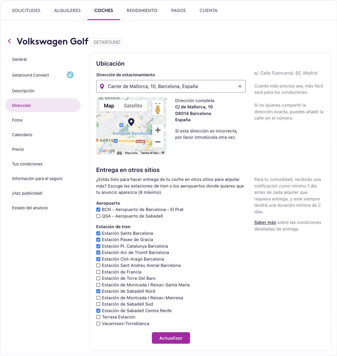 Anteriormente, los propietarios con intercambio de llaves sólo podían añadir tres puntos de entrega además de la ubicación inicial del coche. ¿Pero adivina qué? Hemos aumentado este límite a ocho. Ve ahora al panel de control de tu vehículo y elige tus ubicaciones preferidas. Más visibilidad significa más reservas, ¡así que aprovech al máximo esta función!